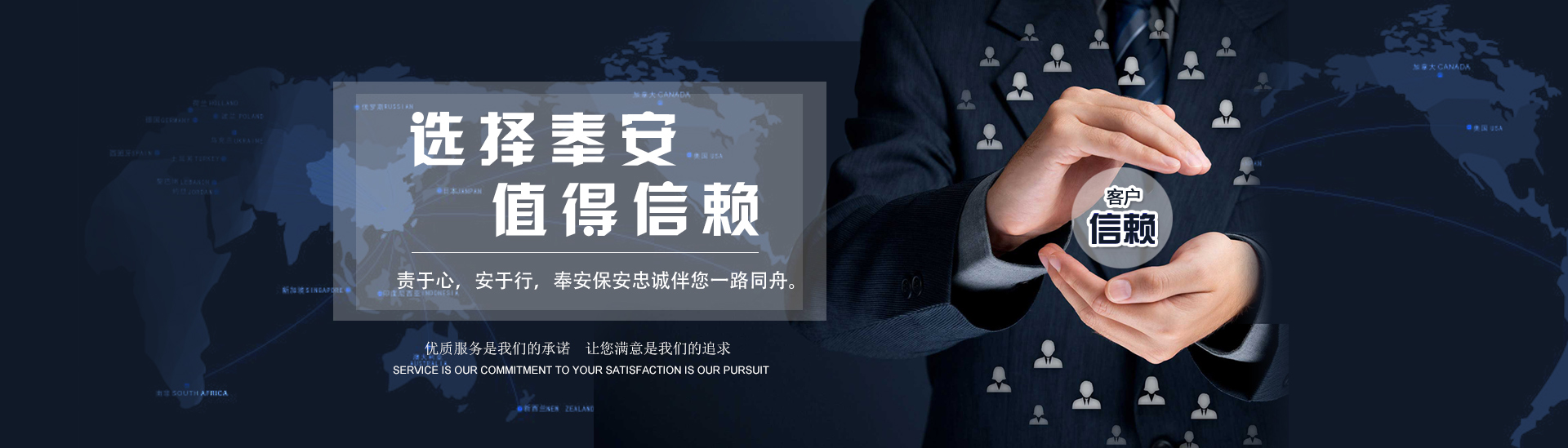 以客為尊 :客戶是公司生存和發展的決定因素,沈陽奉安保安服務有限公司堅持以客戶為上帝的經營理念,全力貫徹“以客為尊、以誠待客”的服務宗旨查看更多 >> -